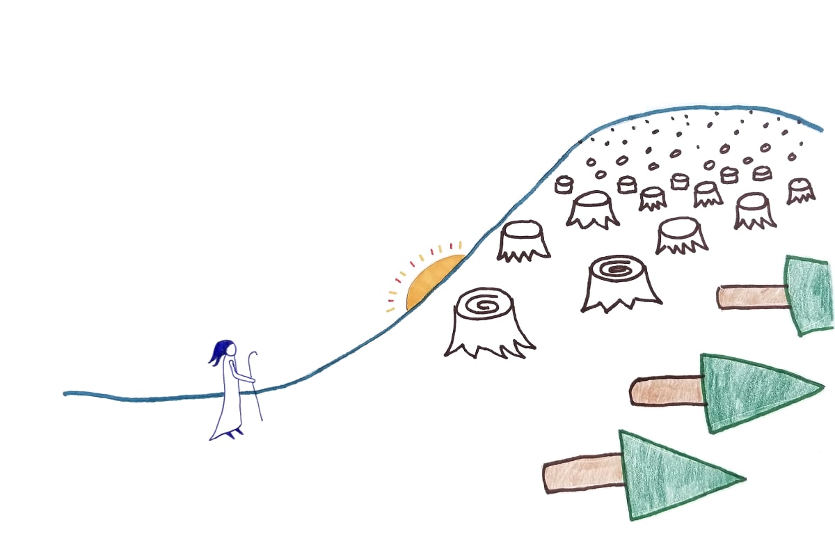 The Pine Fairy grieves the death of some Pine Trees that were like family to him.