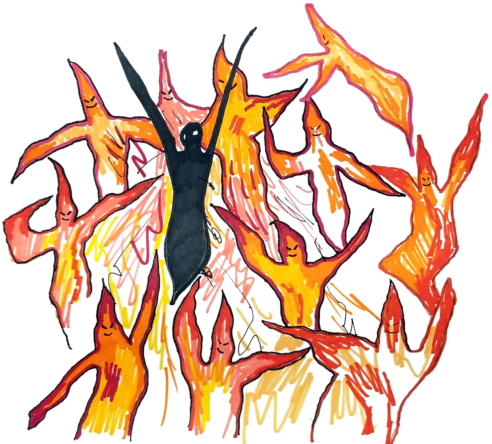 Oh! It’s like a parade- Everyone dancing around in the sun while I’m searching for the shade Or someone who can help me understand the things I’ve seen; But the dark world engulfs me, he’ll never let go because I am his queen.