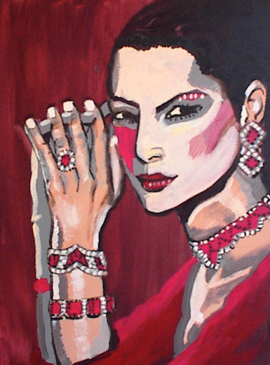 Lady with Rubies on Red Background.   When I wrote this song I was taking a class in Renaissance Astrology, and I had read a book- which I think was by Cornelius Agrippa- in which he describes the Soul of the World as loving all things sweet and shiny. I was glad to read that, because it matched up with my idea (at the time) of the Universe being one giant woman who loved flowers, candy, jewelry, and greeting cards, and had the power to turn everything bad into something good.       Download MP3: Fanciful
