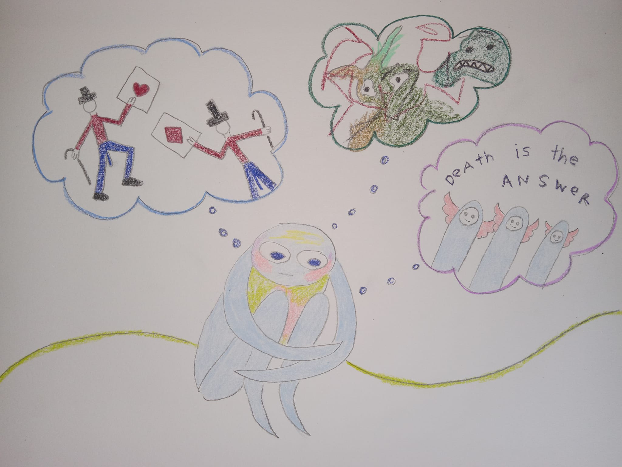 In theory, you could harness this energy for a successful outcome. Use the red energy to become a fireman. The dark energy to become a detective. But what about when the energy is coming from outside sources…. someone is screaming at you, someone is trying to murder you? Will becoming a fireman really help?